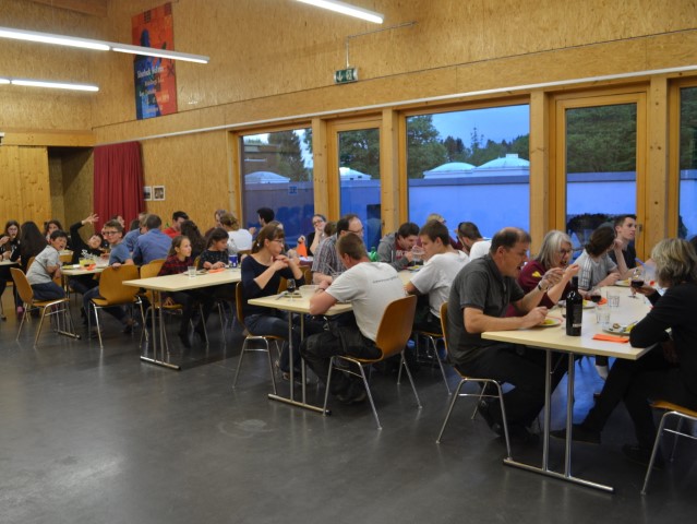 Alle die uns vor, während oder nach dem Flohmärt unterstützt haben, sind schliesslich zum Helferessen im JSZ eingeladen. Es wird der finanzielle Erfolg verkündet und alle geniessen das wohlverdiente Znacht!