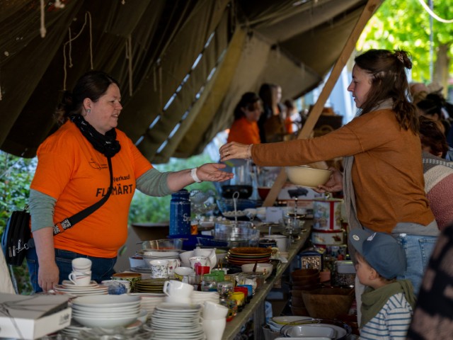 Endlich geht's los! In 3 Schichten und insgesamt rund 150 Einsätzen verkaufen die zahlreichen Verkäufer*innen die Flöhe an die Schnäppchenjäger*innen. Ein Highlight ist bestimmt auch die neu um 11 Uhr stattfindende Veloversteigerung sowie der Tisch mit den Antiquitäten.