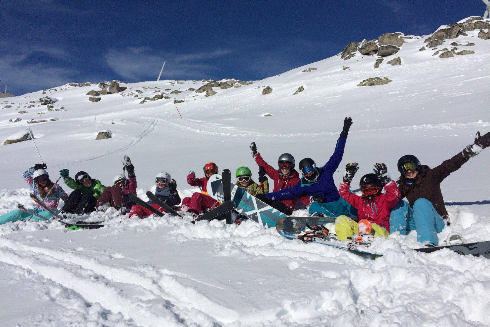 Jedes Jahr fahren wir zusammen mit dem Car in ein Skigebiet und dann geht's ab auf die Pisten!